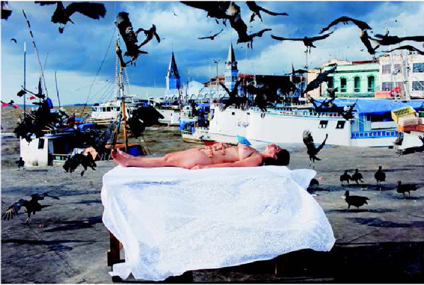 Berna Reale, com a perfomance orientada para fotografia, resultando em um tríptico, “Quando todos calam”, foi ao Ver-O-Peso nua e se cobriu de vísceras para uma imagem surreal de tão absurdamente real. “Um lugar onde para mim é o estômago da cidade, um lugar onde a fartura e a miséria se confundem”, de acordo com a artista que levou o grande prêmio do Salão em 2009.