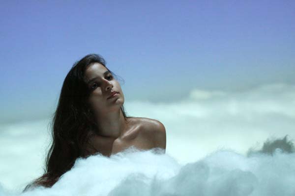 da brancura infinita. a pele. a pele que sai da pele. a esconder qualquer voz que a demarque. des.marcação in.visível. o silêncio da própria tessitura que a constitui a inibir qualquer mote. o monte no céu. o cio sob(re) nuvens. mergulha no fundo do branco.azul. desliza sobre o silêncio e desfigura o tanto. ela que lá está. da beleza. o corpo. percurso singelo sobre rodas entontecidas num frêmito de olhares vadios. a brancura rege o tempo da matéria. a fibra sintética floresce por todo o espaço. agora sim. projeta-se no pós.vazio. toma os olhos de todos. como a re.velar a nudez que zomba de Eros. este. apartado da cena. pois sua força já é toda branda. branca. o movimento sobre rodas tira o foco do que poderia ser sedução. tesão. tara. há mais branco aqui do que supunha a vertigem de um felino a vacilar na busca da brancura da carne. do sangue não mais. mas algo mais. o dizer de um lugar perdido de quem o corpo se flagra no vislumbre de um abrigo fluido. nuvem. nudez embranquecida a engendrar na corporeidade de sua imponderabilidade os sentidos de estranhos. acusam movimentos tortos sobre rodas. rotas. lá onde o chão que a descreve permite o fake do antro fechado a falsear o fora. boxing Luciana. antro fechado na composição do mundo.caixa de construção do movimento em duplicidade. o real e o virtual. dose dupla para embebedar corpos. o real é entre. entretenimento do que cabe na arte sua pulsação do jogo. do ardil. entrevisto num devir sobre rodas no que sugere o aberto no fechado. o fora no dentro. o virtual é fluido a emanar do in.color. fluidez da ninfa de púbis setentista a des.aparecer no incorpóreo do espaço virtual. virtualidade oblíqua a definir um todo na tez matizada em róseos e brancos. o desaparecimento é a condição de que o silêncio é todo tomado por ele mesmo. o silêncio. olhos de não.mais.se.ver remetem a um tempo longínquo que a imagem esvazia. esvaziamento todo carregado de uma lentidão que afirma a rapidez a um paraíso desinvestido da referência felliniana. a que se dá no título. e no outro ponto tem.se o rumor de vôo. toco então um Bach. o Richard do poético Fernão Capelo Gaivota. do mesmo o outro vôo. “o paraíso é uma questão pessoal”. todo paraíso pode ser perdido. ou alcançado segundo o que se quer que seja paraíso. ou se todo paraíso que se quer que seja paraíso está sempre longe. no mesmo registro bachiano. “longe é um lugar que não existe”. e se longe é um lugar que não existe nunca se chega ao paraíso nem mais rapidamente ou lentamente. talvez só sonolentamente. durma com um silêncio desse. porque o sono é o possível de uma recomposição ao visual. é esta sensação disparada pelo tempo da videoinstalação na pulsação da brancura infinita de que se sustenta a armadilha-Luciana. pode ser que alguém caia na armadilha in-suspeita. o que nos leva a um outro eixo desta armação crítico.poética intensificada num des.lugar. o corpo. em registro fluido da fêmea no deslize das emanações de um olor fugaz do sexo da moça . o sexo da moça branca nua não se demora no revés do olhar. é menos sexo. mesmo sendo. tudo ali é fugaz. nunca andar sobre aros entontecidos o fora. a fugacidade é corte no vazio de quem entra no jogo da ninfa silenciosa e seu quase.riso. quase.sexo. quase. quasímodos a olhar a moça na sua fuga para o paraíso. deixando em aberto a condição outra do jogo. regido por um pequeno demônio a levar os expectadores sobre rodas a sentirem-se mais leves. num falso.céu adocicado. adocicado sim pela substituição neste críticolhar da fibra sintética por algodão.doce. porque a vida é doce como queria o Lobo que era mau. e por um tempo efêmero a vida passa sobre rodas. a nos dizer de um paraíso que se quer para além da fugacidade que a videoinstalação sugere. construído numa passagem que a arte abre. está.se diante de um dizer que é quase.mudo na sua fração de arte. fração que é força de silêncio. tanto no vôo quanto na queda das rodas. mais lentamente para o paraíso tem uma verdade.fêmea que se expressa num domínio incessante do corpo da obra e do corpo.imagem da artista. toda. a obra. fechada como corpo no cubículo real.virtual de que é necessário pisar. e se “para pisar no coração de uma mulher basta calçar um coturno com pés de anjo noturno” na fina ambigüidade perceptiva de Chico Cesar. para pisar em mais rapidamente para o paraíso de Luciana Magno basta calçar patins.