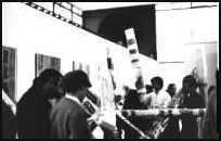 0 público é convidado, através de um cartaz afixado ao lado do trabalho, a participar do mesmo. Tomando-se um dos bastões e girando-o lentamente em várias direções e dando voltas completas, ele emite sons de ÁGUA escorrendo, cachoeira, corredeiras, chuva caindo ou o que mais permitir uma imaginação fértil.
