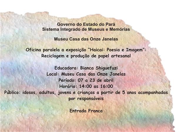 Paralelamente à exposição ocorrerá Mini-oficina de experimentação plástica: “Reciclagem e produção de papel artesanal”
