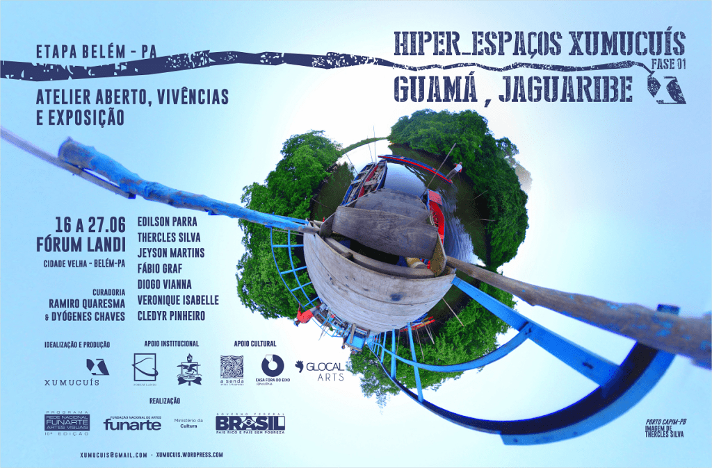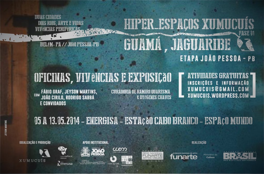 Hiper_Espaço Xumucuís [Guamá, Jaguaribe] é uma realização Xumucuís, com apoio institucional da Prefeitura de João Pessoa, Estação Cabo Branco, Espaço Cultural Energisa e Espaço Mundo, parceria Fora do Eixo e Varadero, em uma realização Programa Rede Nacional Funarte Artes Visuais 10ª Edição – Funarte, Ministério da Cultura e Governo Federal.