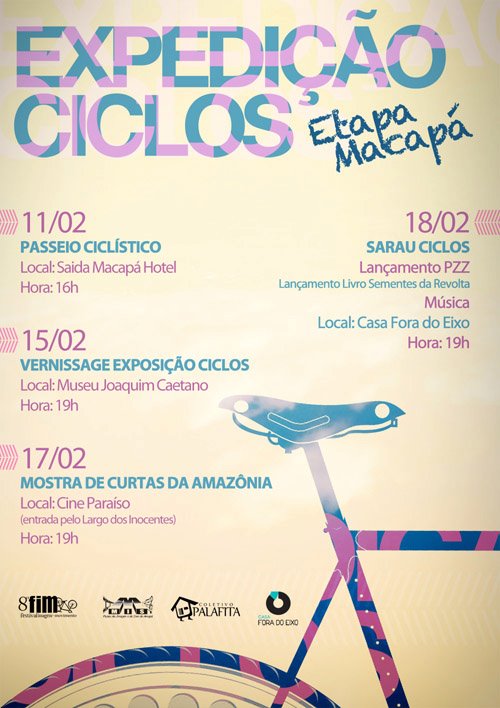 A Expedição Ciclos é uma ação de caráter artístico-educacional voltada para a pesquisa, registro, produção e disfusão da cultura e arte amazônicas. Esse processo acontecerá através do trabalho de um coletivo de pesquisadores, jornalistas, artistas e produtores culturais paraenses, que percorrerão todos os estados da amazônia legal, com o objetivo de dialogar com tais realidades através da realização de exposições, performances, vídeos, intervenções urbanas, leituras e outras formas de expressão, tendo como referencial a relação do homem amazônida com a bicicleta. Uma relação que vai muito além da mera função utilitária da bike como meio de transporte, ou da relação fetichista enquanto objeto ou bem de consumo. Uma relação anterior ao conceito “ecologicamente correto” de veículo não poluente, que se manifesta nas diferentes dinâmicas de construção de identidade cultural, provocadas pela inserção da bicicleta no cotidiano das comunidades amazônicas. Compreender a importância da bicicleta enquanto elemento (trans)formador da identidade do povo amazônico, na contemporaneidade, através produção digital de conteúdos artísticos, é a inquietação que impulsiona esses artistas.